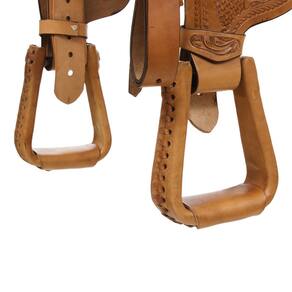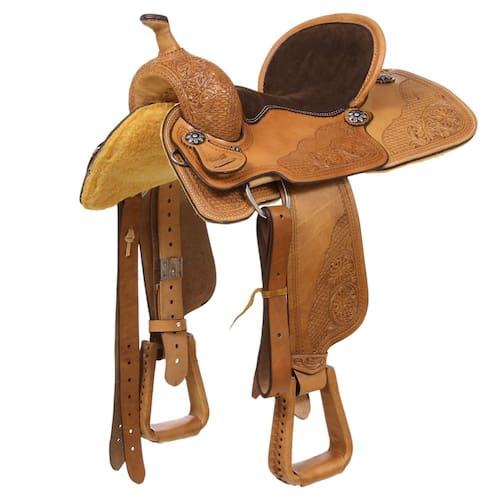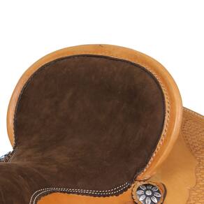 Sela de excelente qualidade modelo Tambor e Baliza fabricada em couro totalmente trabalhado na cor Natural, com assento em couro Nobuck costurado e acolchoado de 15", margaridas de metal, uma armação toda invervada, o que garante maior durabilidade e a não deformidade ao longo da sua utilização, também está presente ferragens em aço inox e acabamento do suador em lã sintética. Uma peça que serve principalmente para provas de tambor e baliza, pois tem maior aderência assim podendo realizar manobras mais bruscas, mas também bastante presente em exibições e shows! Principalmente por causa do pito de couro, que auxilia na condução do laço. Um verdadeiro sonho de consumo!