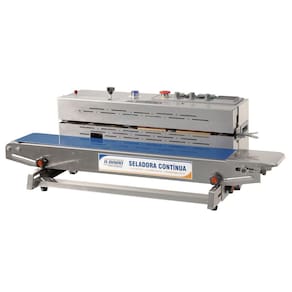 A Seladora Contínua Automática SCD-900V da R. Baião é a solução ideal para negócios que buscam produtividade, versatilidade e padronização nas embalagens. Fabricada em aço inoxidável e equipada com datador de tinta sólida, essa seladora realiza impressão de até 3 linhas com 45 caracteres, possibilitando a gravação de informações essenciais como fabricação, validade e lote. Com sistema de esteira e tracionamento contínuo, ela pode operar em posição horizontal ou vertical, selando até 20.000 embalagens por dia. Seu painel é intuitivo, com controle de temperatura e velocidade da esteira, garantindo precisão e eficiência no processo. A selagem é feita com correia de teflon e roda de relevo em aço, adequada para diversos materiais como PE, PP, BOPP, PET, papel e grau cirúrgico. Além disso, atende às normas NR-12 e possui capacidade de datar até 100.000 pacotes com um único rolo. Ideal para indústrias, distribuidoras, empacotadoras e comércios em geral.