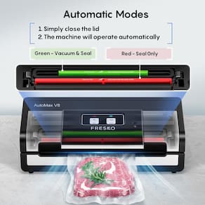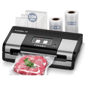 Experimente a preservação de alimentos sem complicações com nossa seladora automática a vácuo de alimentos. Projetada para conveniência e excelente desempenho, esta seladora a vácuo totalmente automatizada é adequada para uso doméstico e comercial. Possui detecção inteligente de umidade e bolsa, permitindo que você vede vários alimentos sem esforço. Equipado com dois modos de vedação, um para alimentos secos e outro para alimentos úmidos, nosso selador de saco a vácuo oferece opções versáteis para manter seus alimentos frescos por mais tempo. Com uma poderosa taxa de sucção de 18L/min, esta máquina de armazenamento de alimentos a vácuo pode selar continuamente até 50 sacos em apenas 20 minutos, tornando-a ideal para vedação a granel. Sacos de tamanho personalizado podem ser facilmente feitos com o armazenamento de rolo embutido e cortador integrado, permitindo que você crie o ajuste perfeito para cada item que você selar. Para uma limpeza fácil e completa, o selador a vácuo de cozinha vem com um visor de vácuo removível com detecção de água total, garantindo que não haja derramamentos ou sujeira dentro do selador. Por que escolher nosso selador de vácuo automático? Operação totalmente automática de qualidade superior, detecção automática de umidade, vedação hermética e segura, potente potência de sucção de 18 L/min. Perfeito para refeições em grande escala - sessões de preparo - Armazenamento de rolo embutido e cortador câmara de vácuo removível - Exibição de detecção de pulso e funções de vácuo externas. Satisfação garantida O pacote inclui 1 máquina de vedação a vácuo para alimentos, 1 junta de espuma, 2 sacos de rolo (20 cm x 20' e 28 cm x 50 cm) 100 unidades de sacos pré-cortados: 15 x 25 cm (40 peças), 20 x 30 cm (50 peças), 28 x 40 cm (10 peças) 1 conjunto de acessórios externos para aspirador de pó 1 x manual