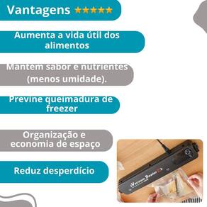 Seladora a vácuo bivolt prática portátil Descrição do anúncio: A máquina seladora a vácuo portátil é a solução ideal para conservar alimentos frescos por muito mais tempo. Compacta, prática e fácil de usar, ajuda a economizar espaço e reduzir o desperdício. Com uma potência de 90w e design moderno, essa seladora é perfeita para manter a qualidade e o sabor dos seus alimentos. Além disso, também pode ser para proteger objetos como documentos, joias e fotos. Transforme a organização da sua cozinha com você Conteúdo da embalagem: 1x seladora a vácuo para alimentos 1x cabo de energia 1x manual de instruções 10x sacos a vácuo Características: Alta eficiência na selagem Conservação prolongada Especificações: Potência: 90w. Capacidade do coletor: 0,4l. Material: plástico abs resistente. Dimensões: 21x15x7cm. Peso: 290g. Principais perguntas sobre o produto e respostas: 1 por que vale a pena investir em uma seladora a vácuo Porque ela aumenta a durabilidade dos alimentos, preservando sabor, textura e nutrientes por muito mais tempo, reduzindo o desperdício. 2 a seladora a vácuo ajuda a economizar dinheiro Sim, ao conservar melhor os alimentos, você evita perdas e pode comprar em maior quantidade, aproveitando promoções e embalando porções para consumo futuro. 3 a seladora a vácuo é útil apenas para alimentos Não, além de alimentos, ela pode ser Utilizado para proteger documentos, joias, roupas e eletrônicos contra umidade, poeira e oxidação. 4 é difícil usar uma seladora a vácuo Não, os modelos domésticos são simples de operar, com poucos botões e instruções claras. Basta posicionar o alimento no saco, fechar e acionar a selagem. 5 a seladora a vácuo ocupa muito espaço na cozinha Não, a maioria dos modelos domésticos é compacta e leve, podendo ser facilmente guardada em armários ou gavetas. Marca: Não Informado