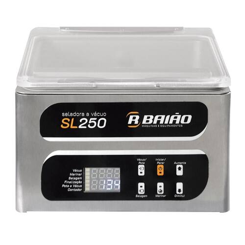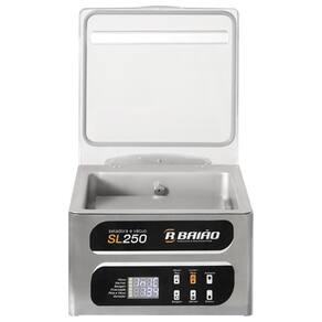 A Seladora a Vácuo de Câmara SL250 da R. Baião foi desenvolvida para oferecer praticidade, economia e sabor em cozinhas residenciais e comerciais. Compacta e eficiente, é ideal para quem busca preservar alimentos com mais qualidade, evitando o desperdício. O modelo conta com função de marinar com ciclo regulável, selagem a vácuo em sacos Nylon Poli lisos e também em potes herméticos. A estrutura em aço inox 304 garante durabilidade e facilidade na limpeza, com cuba arredondada, bomba de duplo pistão isenta de óleo e painel digital IP65 de fácil manuseio. Com ela, é possível selar alimentos com segurança, preservando sabor, textura e nutrientes. Acompanha mesa interna de regulagem e permite embalar produtos de até 25x30cm.
