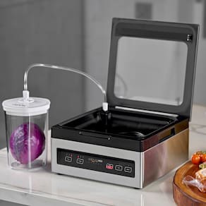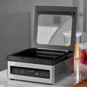 Seladora a Vácuo de Câmara Selovac NEO LNS25. Ideal para cozinhas residenciais e pequenos comércios. Indicado para criar vácuo em sacos e potes, marinar com perfeição e selar embalagens de forma prática e versátil. A embalagem a vácuo prolonga a vida útil do alimento de 3 a 7 vezes em relação ao armazenamento convencional. Feita em aço inox. Possui 5 funções em um único equipamento: Vácuo no saco, vácuo no pote, marinação no saco ou no pote, líquidos e selagem de embalagens. Led indicador. CONSUMO: 0,25kW/h. POTÊNCIA: 250W. CAPACIDADE DA CÂMARA: 2,5L. TAMANHO DE EMBALAGEM MÁXIMO: 25x25cm. PESO: 8,5kg. DIMENSÕES(CxAxL): 30,5x15,5x31cm. Seladora a Vácuo de Câmara Selovac NEO LNS25 é na Atau. Marca: Não Informado
