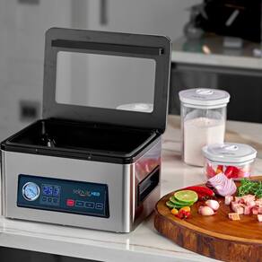 Seladora a Vácuo de Câmara Selovac NEO LNS40. Ideal para cozinhas residenciais e pequenos comércios. Indicado para criar vácuo em sacos e potes, marinar com perfeição e selar embalagens de forma prática e versátil. A embalagem a vácuo prolonga a vida útil do alimento de 3 a 7 vezes em relação ao armazenamento convencional. Feita em aço inox. Possui 5 funções em um único equipamento: Vácuo no saco, vácuo no pote, marinação no saco ou no pote, líquidos e selagem de embalagens. Vacuômetro. CONSUMO: 0,30kW/h. POTÊNCIA: 300W. CAPACIDADE DA CÂMARA: 4L. TAMANHO DE EMBALAGEM MÁXIMO: 30x30cm. PESO: 8,5kg. DIMENSÕES(CxAxL): 34,5x22,5x28,5cm. Seladora a Vácuo de Câmara Selovac NEO LNS40 é na Atau. Marca: Não Informado
