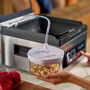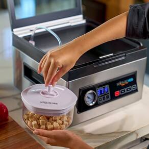 Seladora a Vácuo de Câmara Selovac NEO LNS50. Ideal para cozinhas residenciais e pequenos comércios. Indicado para criar vácuo em sacos e potes, marinar com perfeição e selar embalagens de forma prática e versátil. A embalagem a vácuo prolonga a vida útil do alimento de 3 a 7 vezes em relação ao armazenamento convencional. Feita em aço inox. Possui 5 funções em um único equipamento: Vácuo no saco, vácuo no pote, marinação no saco ou no pote, líquidos e selagem de embalagens. Vacuômetro. CONSUMO: 0,28kW/h. POTÊNCIA: 280W. CAPACIDADE DA CÂMARA: 5L. TAMANHO DE EMBALAGEM MÁXIMO: 25x25cm. PESO: 9,2kg. DIMENSÕES(CxAxL): 31,9x20,8x32,8cm. Seladora a Vácuo de Câmara Selovac NEO LNS50 é na Atau.