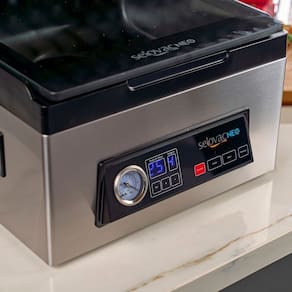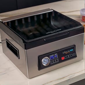 Seladora a Vácuo de Câmara Selovac NEO LNS65. Ideal para cozinhas residenciais e pequenos comércios. Indicado para criar vácuo em sacos e potes, marinar com perfeição e selar embalagens de forma prática e versátil. A embalagem a vácuo prolonga a vida útil do alimento de 3 a 7 vezes em relação ao armazenamento convencional. Feita em aço inox. Possui 5 funções em um único equipamento: Vácuo no saco, vácuo no pote, marinação no saco ou no pote, líquidos e selagem de embalagens. Vacuômetro. CONSUMO: 0,32kW/h. POTÊNCIA: 320W. CAPACIDADE DA CÂMARA: 6,5L. TAMANHO DE EMBALAGEM MÁXIMO: 30x30cm. PESO: 10,2kg. DIMENSÕES(CxAxL): 36x22x35cm. Seladora a Vácuo de Câmara Selovac NEO LNS65 é na Atau. Marca: Não Informado