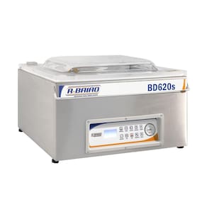 A Seladora a Vácuo de Câmara R. Baião BD620S é ideal para quem busca alto desempenho e robustez no processo de embalagem a vácuo. Com estrutura totalmente em aço inox 304 e tampa de acrílico de 20 mm, ela oferece durabilidade e segurança para o uso em cozinhas profissionais, açougues, supermercados, padarias e casas de carnes. Conta com duas barras de selagem de 62 cm, bomba de vácuo de alta vazão R. Baião e cuba com cantos arredondados que facilitam a limpeza. O painel digital IP65 permite controle preciso do processo, com contador de ciclos e botão de parada de emergência para total segurança. Acompanha mesa de regulagem interna em inox, que proporciona flexibilidade no posicionamento dos produtos, sendo ideal para embalar alimentos sólidos, pastosos ou com líquidos, aumentando sua vida útil e protegendo contra contaminações.