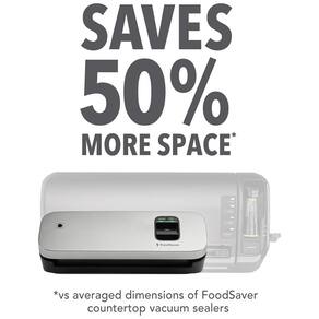 Design compacto que economiza espaço economiza 50 mais espaço em comparação com as máquinas Food Saver de tamanho normal para fácil zenamento e uso frequente Potência de tamanho completo Apresenta o mesmo poder de selagem a vácuo que as máquinas tradicionais de selagem a vácuo Food Saver Fácil alinhamento do saco o torna mais fácil do que nunca de alinhar com precisão o saco de vedação a vácuo à tira de vedação da máquina Fácil de usar painel de controle intuitivo para maior eficiência Compatível com Food Saver 8 rolos de vedação a vácuo e sacos de vedação a vácuo de 1 litro e 1 litro, e quando com o acessório selador portátil vendido separadamente funciona com sacos com zíper Food Saver e recipientes s Inclui 1 rolo de 20X 25cm e 10 sacos selados a vácuo de 1 litro. Estilo Seladora a Vácuo, a seladora a vácuo para alimentos economizadores de espaço Food Saver permite que você aproveite todos os benefícios da selagem a vácuo em um design que economiza espaço Apresentando o mesmo poder de selagem a vácuo dos modelos tradicionais, esta seladora a vácuo compacta também possui uma bandeja coletora de alinhamento de saco inovadora para que você possa alinhar com precisão sua bolsa Food Saver à tira de selagem da máquina permitindo uma vedação perfeita e menos desperdício de bolsa Marca: Não Informado