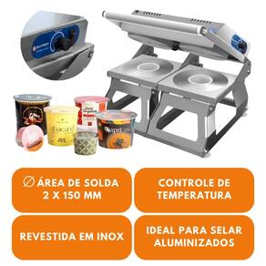 Seladora Para Potes Dupla Inox Com Controle de Temperatura Matriz 120mm SPO150DCT - Sulpack