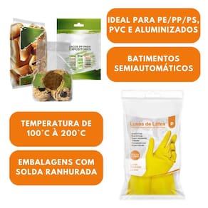 É ideal para trabalhos intensos e maiores espessuras em PE/PP/PS e aluminizados. Indicado para selagem de embalagens com solda tipo ranhurada.