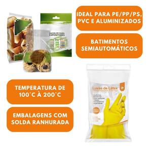 É ideal para trabalhos intensos e maiores espessuras em PE/PP/PS e aluminizados. Indicado para selagem de embalagens com solda tipo ranhurada.