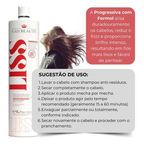 A Progressiva Liss alisa duradouramente os cabelos, reduz o frizz e proporciona brilho intenso, resultando em fios mais lisos e fáceis de pentear. O tratamento Liss foi desenvolvido com alta tecnologia, proporcionando um tratamento intensivo aos fios trazendo condicionamento, brilho e maciez aos fios.