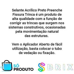 Selante acrílico preto preenche fissura trinca Marca sbrix Quantidade 01 unidade Tipo cartucho Peso 450 g 310 ml Cor preto Validade: 24 meses