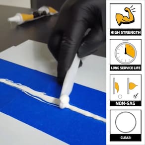 — Selante de alto desempenho: fornece uma vedação forte, durável e à prova d'água para uma variedade de superfícies, incluindo vidro, metal, madeira e a maioria dos plásticos.