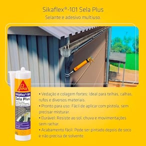Sikaflex 101 Sela Plus é um selante/adesivo elástico, monocomponente, a base de poliuretano que cura com a umidade do ar, sendo recomendado e adequado para vedação e colagem, oferecendo aderência na maioria dos materiais da construção civil.