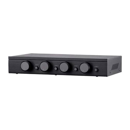 Seletor de alto-falante Monoprice SSVC-4.1 de entrada única de 4 canais com controle de volume, proteção de impedância, botões de ligar/desligar de zona individual, preto, número do modelo: 138159