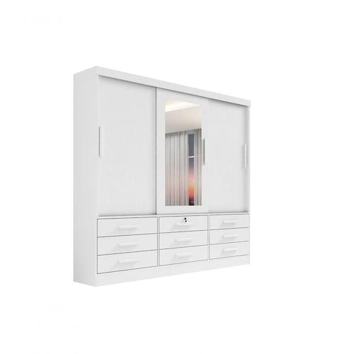 Guarda Roupa Casal Meridian Com Espelho 3 Portas 9 Gavetas Com Pés - D` Doro Branco