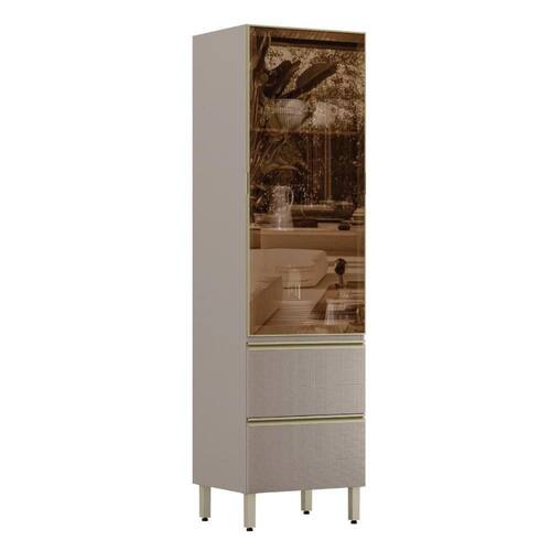 Cristaleira Proença 70cm 1 Porta Vidro Reflecta E 2 Gavetas Nogueira Touch-nude Prime Tx - Demartêz - Blush