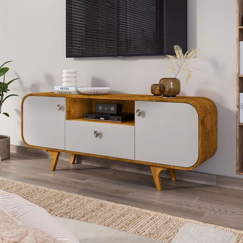 Rack para TV Até 55 Polegadas Noronha 2 Portas 1 Gaveta Naturallle/Off White - Móveis Bechara - Marrom