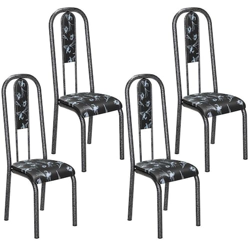 Conjunto de 4 cadeiras Teixeira Madri com encosto martelado preto - Preto