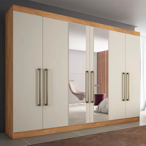 imagem-Guarda-Roupa Casal Made Marcs Bergone com 6 Portas, 6 Gavetas, 7 Prateleiras e Espelho - 274 cm de Largura - Amendôa/Off White