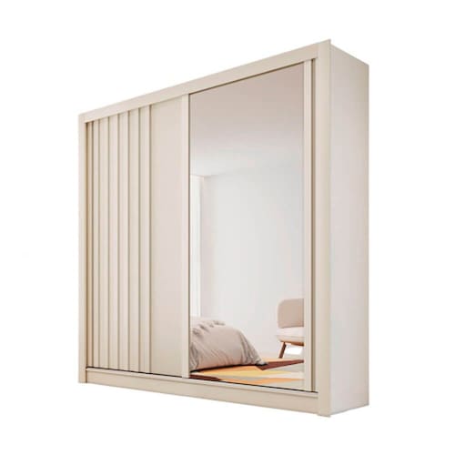 Guarda Roupa Ripado com Espelho 2 Portas - Verona-Off White - Made Marcs