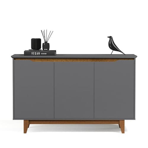 imagem-Aparador Buffet Sala Flow Com 3 portas Pés Madeira Maciça - Cinza