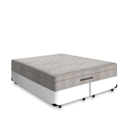Cama Box Airtech Queen + Colchão de Molas Ensacadas - Ortobom - Spring - 158x198x60cm - Preto - Branco