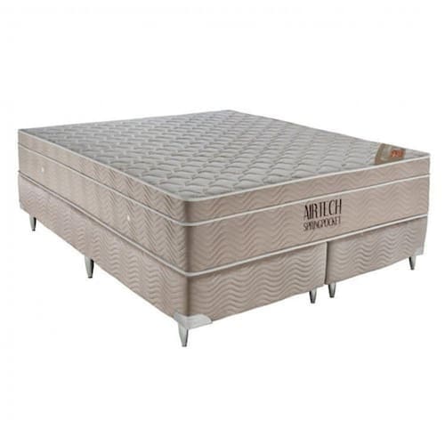 Cama Box Airtech King + Colchão de Molas Ensacadas - Ortobom - Spring - 193x203x60cm - Preto - Bege