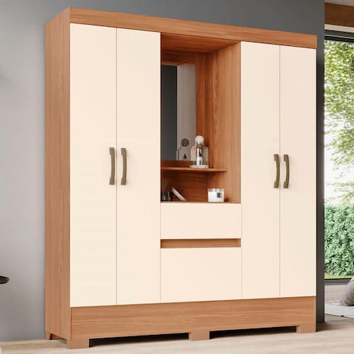 Guarda-Roupa Solteiro 4 Portas 2 Gavetas Nature/Off White Bs07 - Briz - Bege