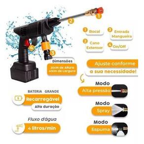 Sem fio, sem preocupações: Lavadora Jato de Alta Pressão Recarregável Portátil Com a sua lavadora de alta pressão você pode deixar brilhante qualquer material ou superfície. Seu pulverizador de água de alta pressão é entre dez e cinquenta vezes mais poderoso do que as mangueiras de jardim, tornando o processo de limpeza mais eficaz e fácil