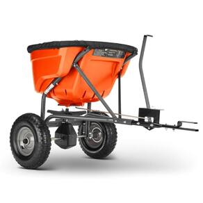 •Alavanca de controle de fluxo de haste de aço e engrenagem de aço tratada termicamente. • Pneus de piso de relva pneumática de 14 "x 4"; pneus maiores aumentam o "Espalhador", permitindo maior propagação. • Engrenagem de aço tratada termicamente, invólucro fechado • O hardware de dicromato amarelo resiste à ferrugem. • Inclui capa de vinil, mantém o material seco (isto é, impede a ativação do gelo) e protege do vento; também ajuda a manter o material no funil. • Pino de engate incluído. Capacidade: 59kg