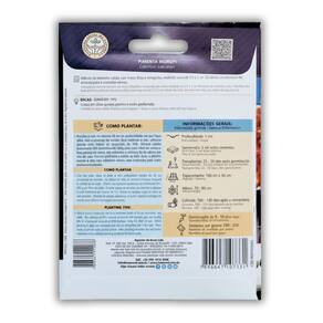 Características * Nome científico: Capsicum baccatum * Germinação: 8 a 10 dias * Profundidade: 1 cm * Espaçamento: 120 cm x 50 cm * Altura média da planta: 70 a 90 cm * Transplante: 25 a 30 dias após a germinação * Colheita: 100 a 120 dias após a semeadura * Sementes por grama: 290 a 350 * Clima indicado: Quente * Tipo de embalagem: Envelope 2,5 g * Pureza: 99% * Germinação: 90% * Renascem: SP-17443/2019