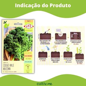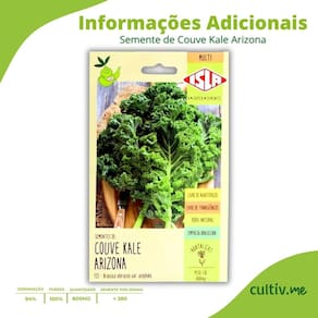 Características * Nome Científico: Brassica oleracea var. acephala * Tipo: Couve Kale Crespa * Germinação: 5 a 10 dias * Época de Plantio: Ano todo (preferência por outono e inverno) * Espaçamento recomendado: 80 x 40 cm * Altura média da planta: 60 a 90 cm * Colheita: 70 dias (verão) / 90 dias (inverno) após o plantio * Rendimento: Cerca de 280 sementes por grama * Registro no MAPA: RS-05567/2019