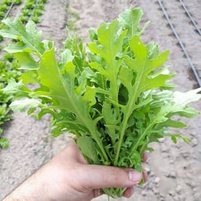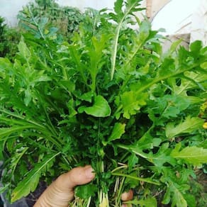 * Rúcula Rokita, uma cultivar com visual atraente, folhas "recortadas" e cheia de sabor.