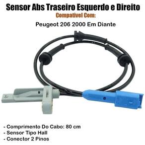 Sensor abs traseiro direito e esquerdo Aplicação: Peugeot 206 2000 em diante Características: - ótima qualidade e durabilidade. Especificações: - traseiro - direito e esquerdo - comprimento: 80 cm - sensor: 43 mm - conector: 2 pinos - tipo: hall Códigos: 4545a3 0986594564 esa026 120513 gs2564 Dúvidas frequentes Qual horário de atendimento O horário de atendimento é das 08:00 às 17:30 hrs. Ainda tem dúvidas Utilize o campo de perguntas em caso de dúvidas e somente clique em comprar após a plena certeza em honrar a compra e concordar com as condições descritas acima. Importante Não nos responsabilizamos por instalação mal realizada; a instalação deve ser feita por um especializado. De um novo visual para o seu carro, aqui você encontra os melhores produtos com os melhores preços Imagem meramente ilustrativa. Marca: Não Informado