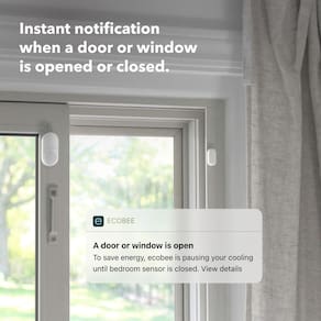 - Notificações em tempo real sempre que uma porta ou janela é aberta ou fechada por meio do aplicativo ecobee Quando combinado com o termostato inteligente ecobee Premium, ele pode tocar uma campainha quando o seu SmartSensor para portas e janelas é aberto, para maior tranquilidade. Não é necessária nenhuma subscrição de segurança inteligente para utilizar esta funcionalidade.