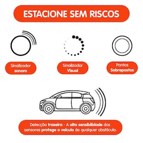 - Sistema de alerta sonoro: Bipes que aumentam em frequência conforme a proximidade do obstáculo, facilitando o estacionamento.