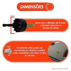 Os sensores Orbe oferecem uma solução completa para estacionar sem riscos e com total segurança. Equipados com avisos visuais, sonoros e numéricos, o sistema auxilia o motorista em qualquer situação, proporcionando uma detecção precisa de obstáculos. O alerta sonoro se manifesta por meio de bipes que se tornam mais frequentes à medida que o veículo se aproxima de um obstáculo e a câmera de ré que auxilia nas manobras, garantindo um estacionamento sem medo e com muita confiabilidade.