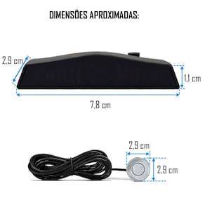ESPESICICAÇÃO: - Sensores Disponível na Cor Preto; - Modelo universal (serve para qualquer carro); - Sensores Acionados pelo Engate da Marcha Ré; - Displayque Mostra Distância do Objeto; - Aviso Sonoro Através de Beep; - Auxílio ao Motorista na Realização de Manobras de Estacionamento; - Diâmetro do Sensor: 22mm - Acabamento Discreto e Sofisticado. - Tensão de Taxa: 12V; - Faixa de tensão de operação: 9 - 16V; - Corrente nominal: 20 - 200mA; - Distância de detecção: 0 - 2,5m; - Frequência ultrassônica: 40KHz; - Temperatura de trabalho: -30 ~+ 70C; - Temperatura de trabalho da tela: -20 ~+ 60C.