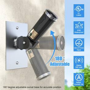 sensor de fotocélula - ?Sensor de fotocélula listado na UL? - O sensor de interruptor fotoelétrico de entrada de 100-277V é listado pela UL. IP65 à prova d'água protege o sensor contra elementos climáticos como chuva e poeira - ?Converta luminárias para ligar/desligar automaticamente?- A fotocélula na iluminação externa tem função de anoitecer ao amanhecer e liga automaticamente ao anoitecer/desligar ao amanhecer. Use-o na luz com potência máxima de 500W, use-o em um circuito com uma corrente máxima de 5A, caso contrário, a fotocélula queimará - ?Instalação simples e fácil de usar?- Coloque a rosca do interruptor no orifício de nocaute e aperte com junta de borracha e porca de trava de liga de zinco. A base giratória pode ser posicionada no ponto preciso, focar a luz onde você precisa é sem esforço - ?Interruptor inteligente de sensor de fotocélula?- O recurso de atraso de 30 ~ 120 s no controle de luz do sensor de movimento externo evita o acionamento acidental da luz devido a um animal vadio, faróis de um carro que passa ou um raio - ?Especificações e aplicações amplas?- Tensão de entrada AC 100-277, 50/60Hz, diâmetro roscado de 2,7 cm, 10~20Lx ligado e 30~60Lx desligado nível de operação. Ótimo para controlar luzes de área externa, postes, luzes de varanda, luzes de quintal, holofotes, luzes de entrada, iluminação de garagem e passarela