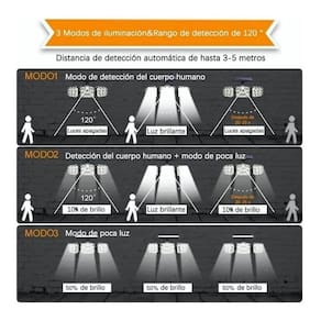 Lâmpada de parede solar Sensor de luz ao ar livre 138 Led 3 Modos Luzes com sensor de movimento sem fio --- instalação fácil, sem cabos ou adaptadores irritantes; Apenas usando os parafusos incluídos para fixar em qualquer parede externa construída de todos os tipos de materiais, incluindo metal, madeira ou plástico IP65 impermeável e resistência ao calor --- design à prova d'água garante que a luz solar seja ao ar livre, mesmo em mau tempo; Proteger eficazmente o corpo da lâmpada e prolongar a vida útil; Luz noturna de segurança ao ar livre, adequada para parede, pátio, jardim, corredor, gramado, caminho, pia, etc. Ele é projetado especificamente para suportar condições climáticas extremas. luzes solares ao ar livre, luz do sensor de movimento ao ar livre com 3mo opcional, impermeável, luz de segurança alimentada por. adequado para ambientes externos, como corredores, portões de jardim, telhados, paredes de terraço, moradias, vitrines, lojas, casas, etc. Esta luz solar com um design único de grande angular fornece um maior ângulo de luz. O painel solar pode ser virado para o sol para alcançar a máxima absorção solar. Especificação: Material: Polissilício + ABS Plástico + Preto Cor Componentes eletrônicos Tamanho: Painel Solar: 145x85mm/5.59x3.39inch 5.5V 1.8W Luz de Jardim: 90x78mm/3.86x2.76inch Bateria: 3. 7v 2400mA 360 Grau Ajuste Rotativo Completo --- Esta luz solar tem 3 módulos de iluminação ajustáveis e 1 painel solar independentemente rotativo, Você pode ajustá-lo e usá-lo de acordo com as necessidades de instalação e necessidades de iluminação; A direção da iluminação é ajustável com as três cabeças de luz flexíveis, poupe o seu trabalho para instalar duas luzes extras; Nenhuma eletricidade necessária, produto ecologicamente correto. A lâmpada solar adota um design único de grande angular. A lâmpada solar tem 3 módulos de luz, um total de 138 lâmpadas LED, cada lâmpada tem uma potência de 2w, e a maior distância de emissão de luz pode chegar a 8M. O painel solar pode ser girado 180 para cima e para baixo e 160 para a esquerda e para a direita. Os dois módulos de luz à esquerda e à direita podem girar para cima e para baixo 90 e 120, o que aumenta muito a faixa de iluminação. A faixa de iluminação é de cerca de 40 metros quadrados. A distância de detecção do produto é de 3-5M. Melhoramos a qualidade da bateria. Built-in 2400mAh bateria de lítio recarregável para garantir a carga total em condições de pouca luz. O painel solar recém-atualizado suporta carregamento rápido, que pode ser totalmente carregado em apenas 4-6 horas; pode ser por 8-10 horas à noite e 6 horas em luz brilhante; e a lâmpada LED de alta qualidade funciona por mais de 20000 horas. Luzes do sensor de movimento sem fio --- instalação fácil, sem cabos ou adaptadores irritantes; Apenas usando os parafusos incluídos para fixar em qualquer parede externa construída de todos os tipos de materiais, incluindo metal, madeira ou plástico IP65 impermeável e resistência ao calor --- design à prova d'água garante que a luz solar seja ao ar livre, mesmo em mau tempo; Proteger eficazmente o corpo da lâmpada e prolongar a vida útil; Luz noturna de segurança ao ar livre, adequada para parede, pátio, jardim, corredor, gramado, caminho, pia, etc. Ele é projetado especificamente para suportar condições climáticas extremas. Luzes solares ao ar livre, luz do sensor de movimento ao ar livre com 3MO opcional, à prova d'água, luz de segurança alimentada. Adequado para ambientes externos, como corredores, portas, jardim, telhados, paredes de terraço, moradias, vitrines, lojas, casas, etc. Esta luz solar com um design único de grande angular fornece um maior ângulo de luz. O painel solar pode ser virado para o sol para alcançar a máxima absorção solar.