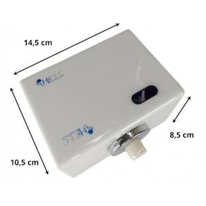 Acionador sensorizado para mictório O acionador sensorizado para mictório, proporciona higiene e economia. É acionado automaticamente na saída do usuário, não existe contato manual, pois a presença do usuário é detectada pelo sistema de sensor infora-vermelho. O tempo da descarga é programado na instalação do produto e poderá ser alterado a qualquer momento. E a cada 4 horas ocorre uma descarga automaticamente para manter o ambiente limpo e com higiene.