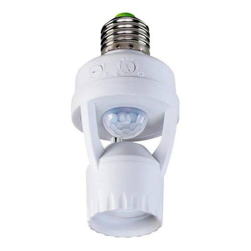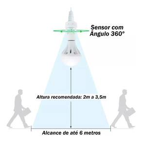 Sensor de presença com soquete bocal E27 para lâmpadas. Fácil de instalar, basta rosquear como uma lâmpada. Economia de até 80% de energia. Acionamento automático sensor de movimento . Compatível com lâmpadas LED, fria, negra, fluorescente ou incandescente de até 60 W soquete E27 . Detecta a movimentação de corpos quentes, pessoas, animais de médio e grande porte e objetos por meio de sensor infravermelho que reconhece as fontes de calor. Bivolt automático 110 - 220V. Frequência da rede elétrica 50/60 Hz;Vida útil de 30.000 horas.Ajuste de tempo e luminosidade modo dia e noite.Distância máxima de detecção 6 m a 24 C . Ângulo de detecção 360.Altura de instalação 2 a 3,5 m.Temperatura de operação 0 a 40 C.Ajuste de tempo: 8 a 120 segundos.Não obstrua o sensor com globos ou qualquer proteção decorativa. Para o funcionamento o interruptor do ponto de energia onde o sensor estiver instalado deve permanecer sempre na posição ligado, para que o sensor seja energisado.