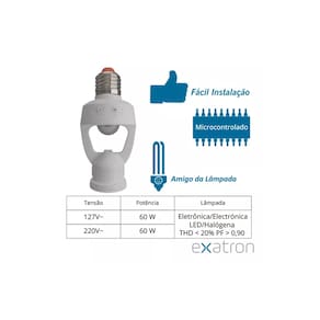 É ideal para o controle de iluminação de sacadas, varandas, quiosques, corredores, escadarias e outros ambientes internos e externos de residências e/ou comerciais. COMANDA QUALQUER TIPO DE LÂMPADA COM BASE E27.