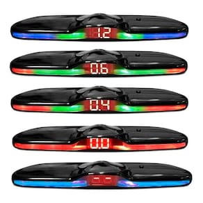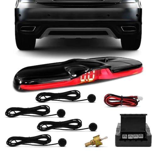 Este sensor é acionado automaticamente ao engatar a marcha ré, ele possui display de Led com marcações de distância e cores que se alteram conforme a proximidade do objeto e um aviso sonoro em 4 estágios.