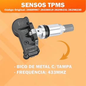 Sensor de pneu tpms Aplicação: Características: - ótima qualidade e durabilidade. Especificações: - bico de metal c/tampa - frequência: 433mhz Códigos: 26689967 26336019 26298231 26298230 Especificação técnica: - padrão de medidas - testado e aprovado dentro das normas de segurança. - ideal para reposição - alta resistência e durabilidade - excelente qualidade e acabamento Instalação: Vantagem: Dúvidas frequentes Qual horário de atendimento O horário de atendimento é das 08:00 às 17:30 hrs. Ainda tem dúvidas Utilize o campo de perguntas em caso de dúvidas e somente clique em comprar após a plena certeza em honrar a compra e concordar com as condições descritas acima. Importante Não nos responsabilizamos por instalação mal realizada; a instalação deve ser feita por um especializado. De um novo visual para o seu carro, aqui você encontra os melhores produtos com os melhores preços Imagem meramente ilustrativa.