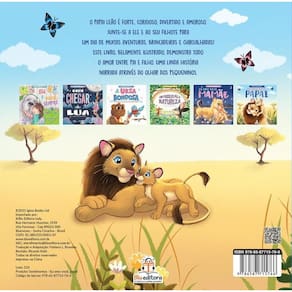 O papai leão é forte, corajoso, divertido e amoroso. Junte-se a ele e ao seu filhote para um dia de muitas aventuras, brincadeiras e gargalhadas Este livro, belamente ilustrado, demonstra todo o amor entre pai e filho. Uma linda história narrada através do olhar dos pequeninos.