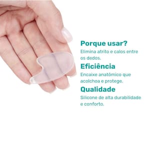 protetor ortopédico separador de dedos, separador de dedos siligel, protetor interdigital silicone, eliminador de atrito entre dedos, protetor para calos e calosidades, separador ortopédico de dedos, protetor de dedos sobrepostos.