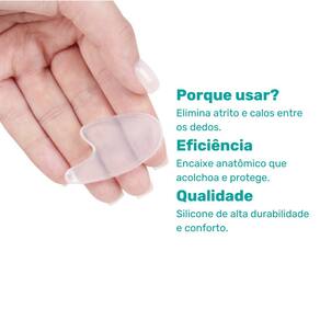 protetor ortopédico separador de dedos, separador de dedos siligel, protetor interdigital silicone, eliminador de atrito entre dedos, protetor para calos e calosidades, separador ortopédico de dedos, protetor de dedos sobrepostos.
