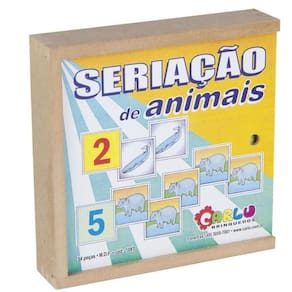 Peças pintadas e serigrafadas em policromia ultravioleta atóxica em uma das faces, com figuras de animais e peças com números relacionado a quantidade das figuras (números de 1 ao 9. Ex: 1 Sapo - n° 1; 2 Baleias - n° 2; etc).